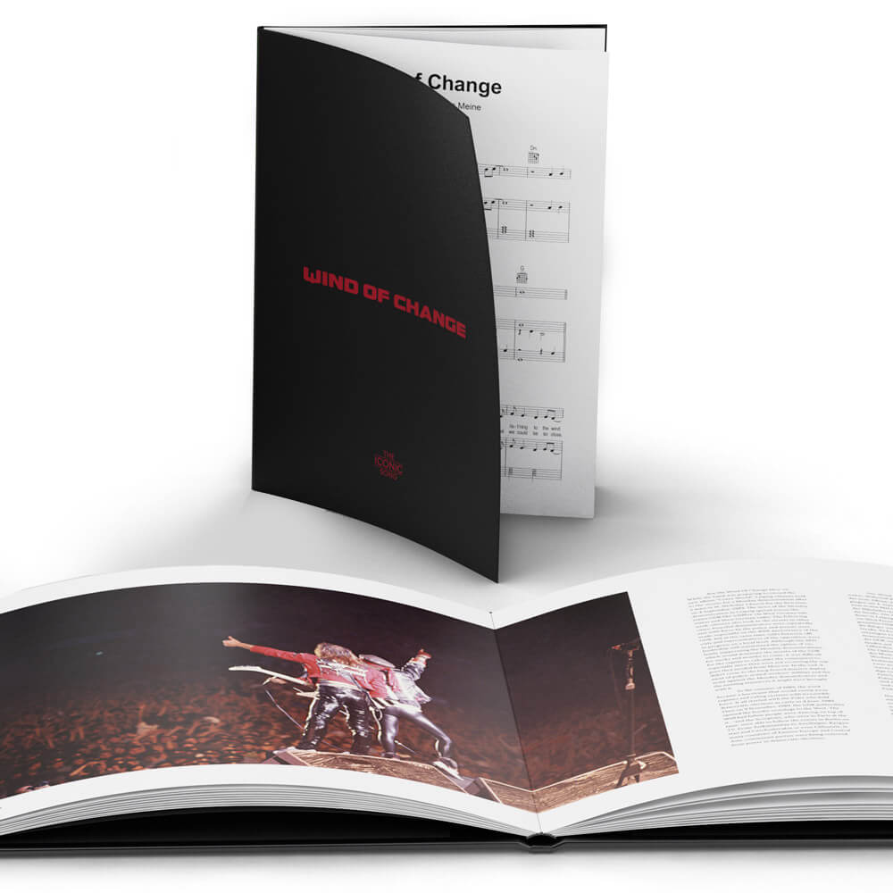 The box set, which appears in a brick look, contains an 84-page hardcover book written by Dr. Edgar Klüsener, former editor-in-chief of Metal Hammer and close confidant of the band, who interviewed Klaus Meine exclusively for this purpose and writes about the genesis and impact of the song. It contains several pages of photographs from the band’s photographer Didi Zill and from Klaus Meine’s private archive, as well as the handwritten lyrics for “Wind of Change” by Klaus Meine.