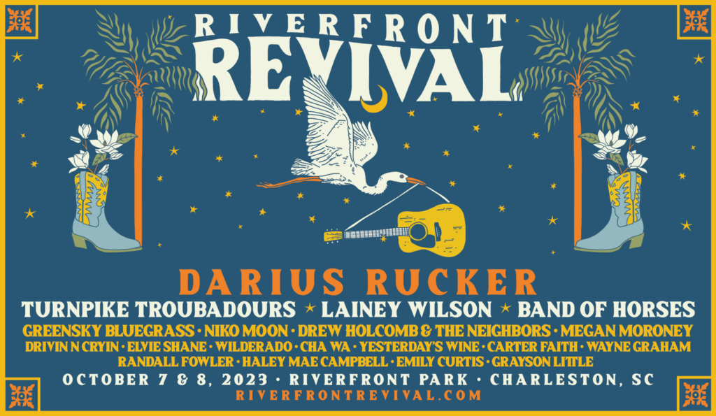 The festival, set to take place Saturday, Oct. 7 and Sunday, Oct. 8 at North Charleston’s beautiful Riverfront Park, will be headlined by multi-Platinum and three-time GRAMMY Award-winner Rucker and Turnpike Troubadours with performances by Lainey Wilson, Band of Horses and Greensky Bluegrass. Festival-goers will also hear the sounds of Niko Moon, Drew Holcomb & The Neighbors, Drivin N’ Cryin, Megan Moroney, Wilderado, Cha Wa, Elvie Shane, Yesterday’s Wine, Carter Faith, Wayne Graham, Randall Fowler, Haley Mae Campbell, Emily Curtis and Grayson Little.
