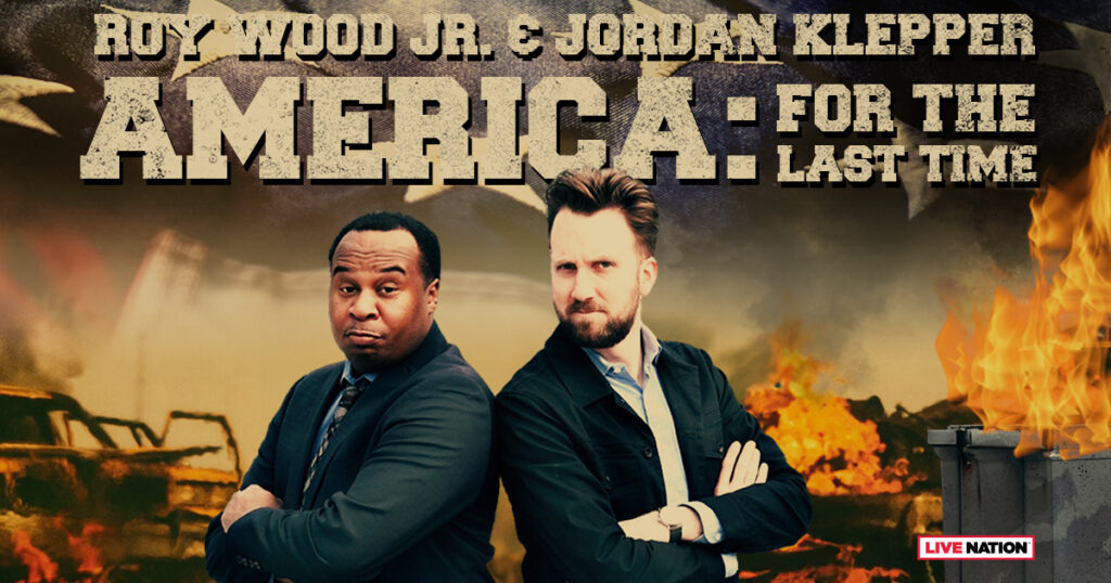 Roy Wood Jr. and Jordan Klepper are bringing “evenings of comedy celebrating America before it explodes and sinks into the ocean” on their America: For The Last Time Tour. Roy and Jordan will riff on today’s headlines, debate the good and the bad, and share stories from their time covering politics – from The Daily Show, to MAGA rallies, to the White House Correspondents Dinner. Whether it’s fielding audience questions or grilling a local baby-kisser, they promise half baked analysis with 100% confidence.