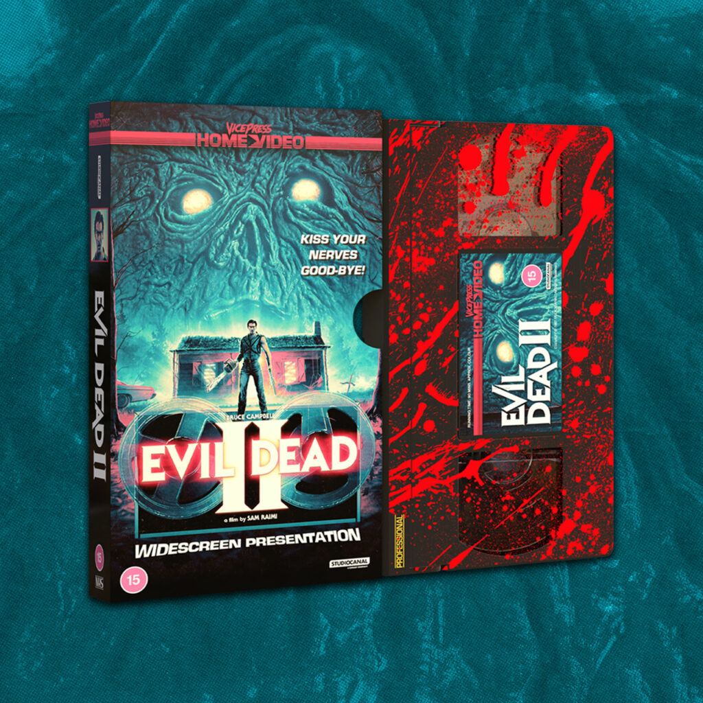 A collaboration between Vice Press’ Matt Ferguson and James Henshaw, along with regular Vice Press collaborator and artist, Florey, Vice Press Home Video launch their first release EVIL DEAD II, produced and sold under licence in the U.K. from StudioCanal.