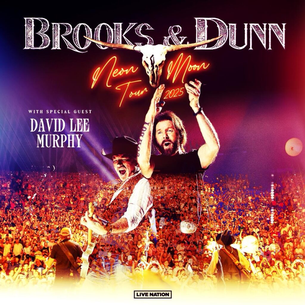 Brooks & Dunn’s one-of-a-kind live show is “a don’t miss” (Whiskey Riff) full of hits from their storied 30 year plus career that take “concert goers down memory lane and reinforce the incredible mark the pair left on Country Music” (Men’s Journal). Adding to the excitement, renowned country rocker David Lee Murphy will accompany Brooks & Dunn on the Neon Moon Tour in 2025. The tour will also offer a variety of different VIP packages and experiences for fans to take their concert experience to the next level. Packages vary but include premium tickets, access to the pre-show VIP Lounge, exclusive poster signed by Kix and Ronnie, VIP merchandise gift and more. VIP package contents vary based on the offer selected. For more information, visitvipnation.com.