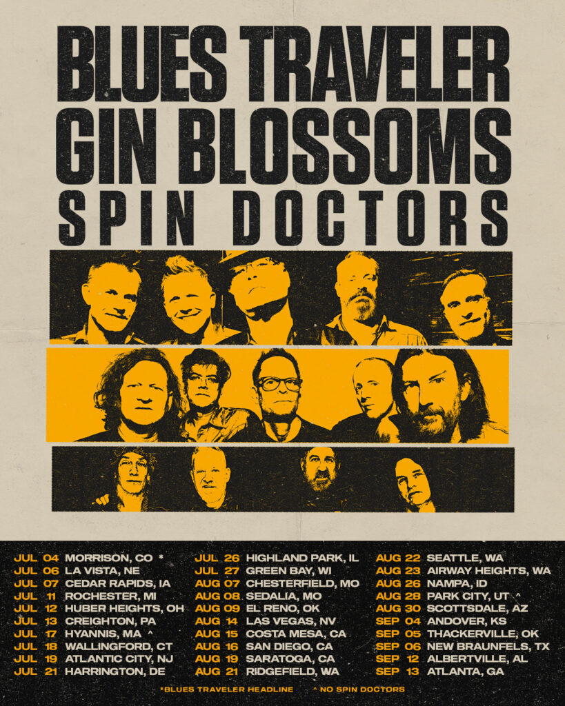 Blues Traveler — currently celebrating 30 years since the release of their GRAMMY® Award-winning breakthrough hit “Run-Around” — and Gin Blossoms will be joined on the tour by legendary alternative rock band Spin Doctors, best known for their chart-topping and GRAMMY®-nominated hit “Two Princes.”