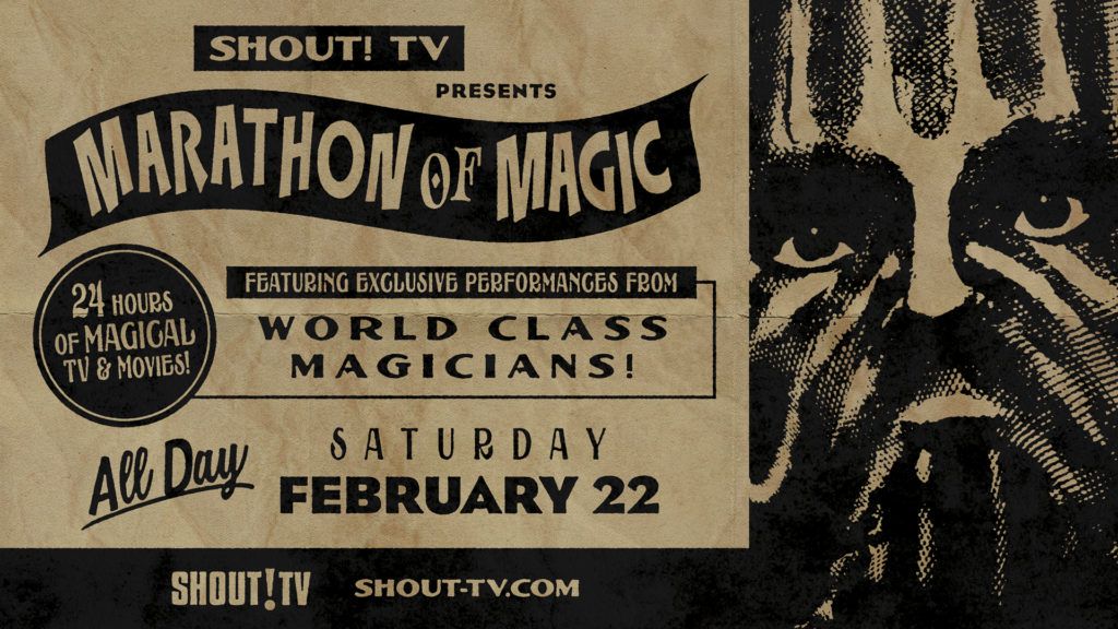 Shout! TV has announced A Marathon of Magic, an event celebrating all things magic with classic TV and movies featuring the mystical arts. Streaming all day February 22, the marathon features classic episodes and specials from Breaking The Magician’s Code, as well as feature films Rough Magic and Magic. During the marathon, viewers will be treated to magical performances from renowned magicians, recorded exclusively for Shout! TV. See the full programming schedule below.