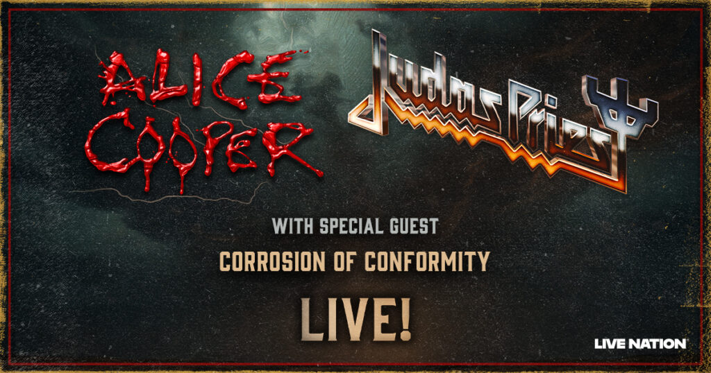 Coming off the second leg of their Invincible Shield Tour and the release of their celebrated 19th studio album, Judas Priest remains a dominant force in metal. Meanwhile, Alice Cooper, the godfather of theatrical rock, wraps up his “Too Close For Comfort” tour this summer, promoting his most recent “Road” album, and will have an as-yet-unnamed all-new show for this tour. Corrosion of Conformity will join as support on select dates.