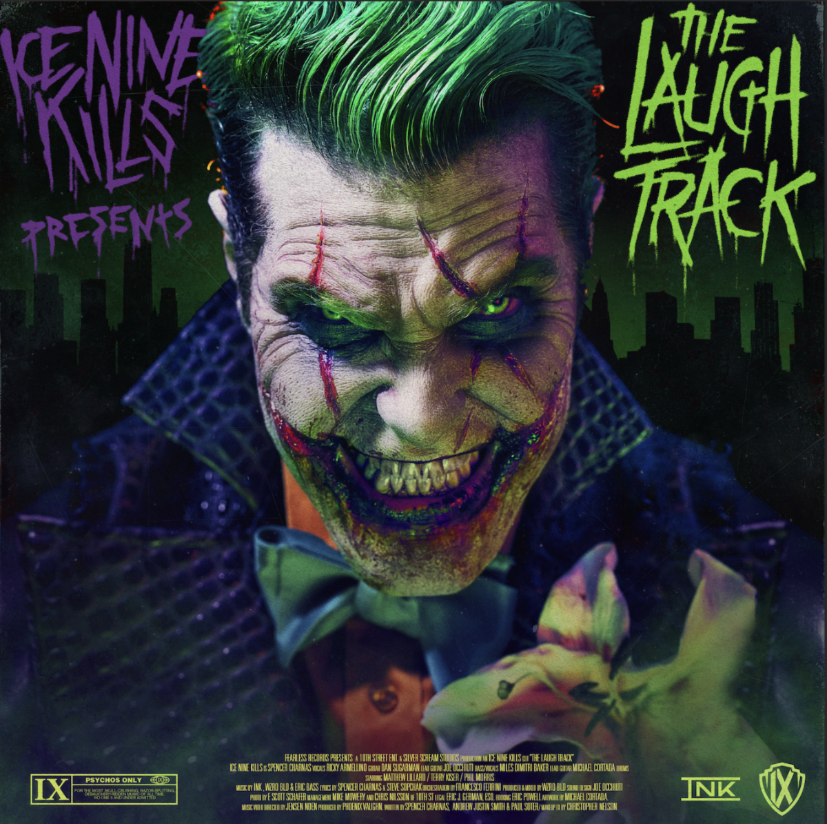 Ice Nine Kills invite you to “dance with the devil in the pale moonlight” with “The Laugh Track,” their riotous homage to Gotham City’s Clown Prince of Crime. The new song and cinematic music video riffs on the Joker, particularly as portrayed by Jack Nicholson in Tim Burton’s gothic Batman.