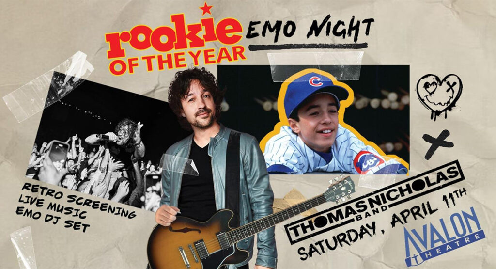 On April 11, Nicholas rolls into the Avalon Theatre in Easton, Maryland, for a one-of-a-kind “Emo Night” event that blends film, music, and full-on ’90s nostalgia. The evening will feature a screening of “Rookie of the Year,” a fan Q&A, a live performance with the Thomas Nicholas Band, and an after-party DJ set packed with emo and pop-punk favorites to keep the energy going well into the night.